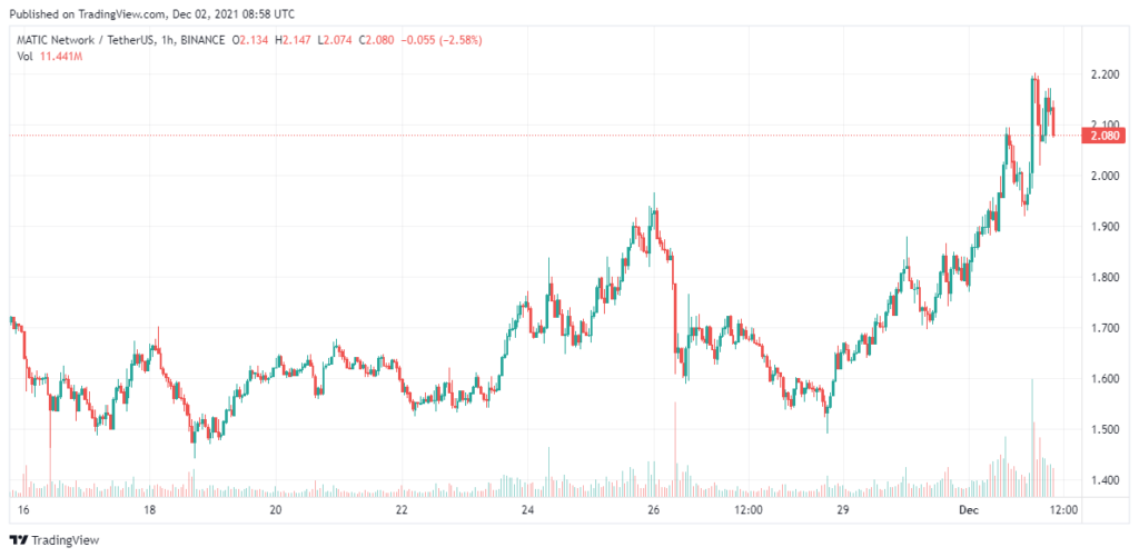 Polygon is trading at $2.09 at the time of writing after an 8.2% gain in 24 hours.